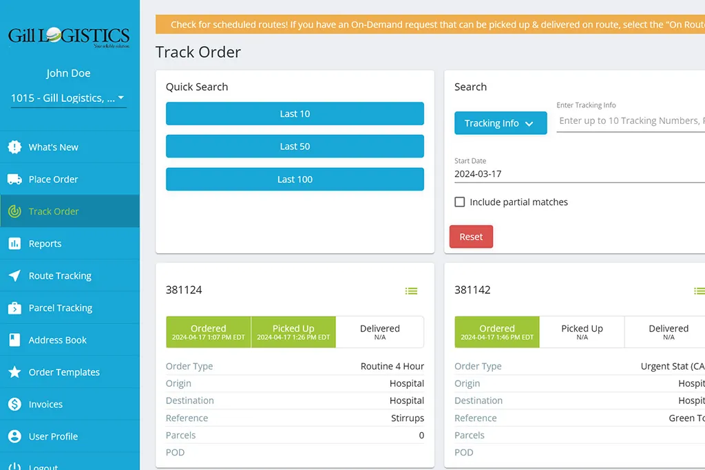 Place an order with Gill Logistics anytime and anywhere with our easy-to-use online ordering portal.